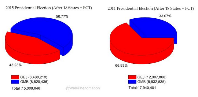 So far APC is leading with 8,520,436 votes while PDP has 6,488,210 votes.